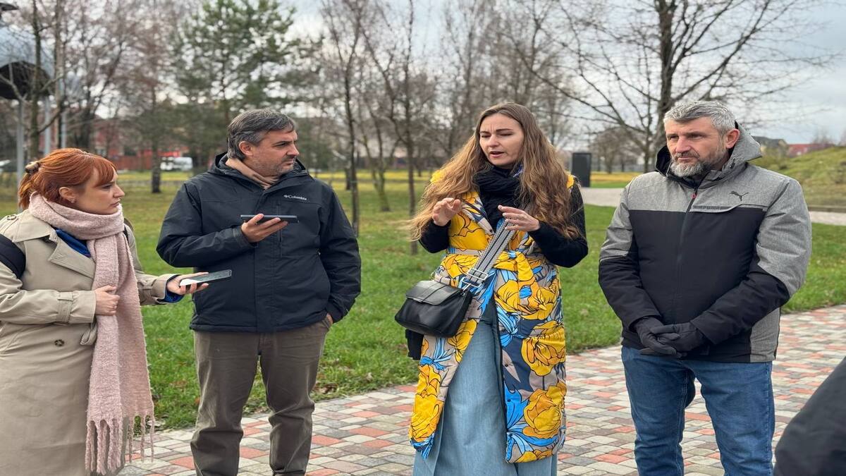 На території Храму Святого Апостола Андрія Первозванного їх зустрів керуючий справами Бучанської міської ради Дмитро Гапченко. Він розповів про кількість загиблих серед мирного населення унаслідок розстрілів росіянами. Зокрема, про підтвердження цих злочинів необхідними службами.