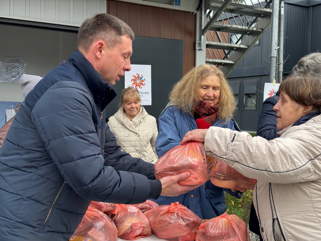 Волонтери відвідали жителів модульного містечка «Ластівка», де передали людям похилого віку 115 продуктових наборів. Кошти на гуманітарну підтримку вони зібрали разом з іншими громадянами Швейцарії.