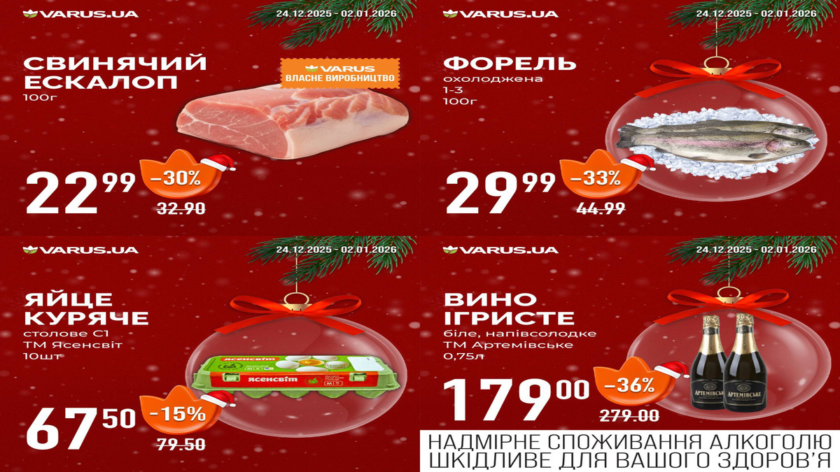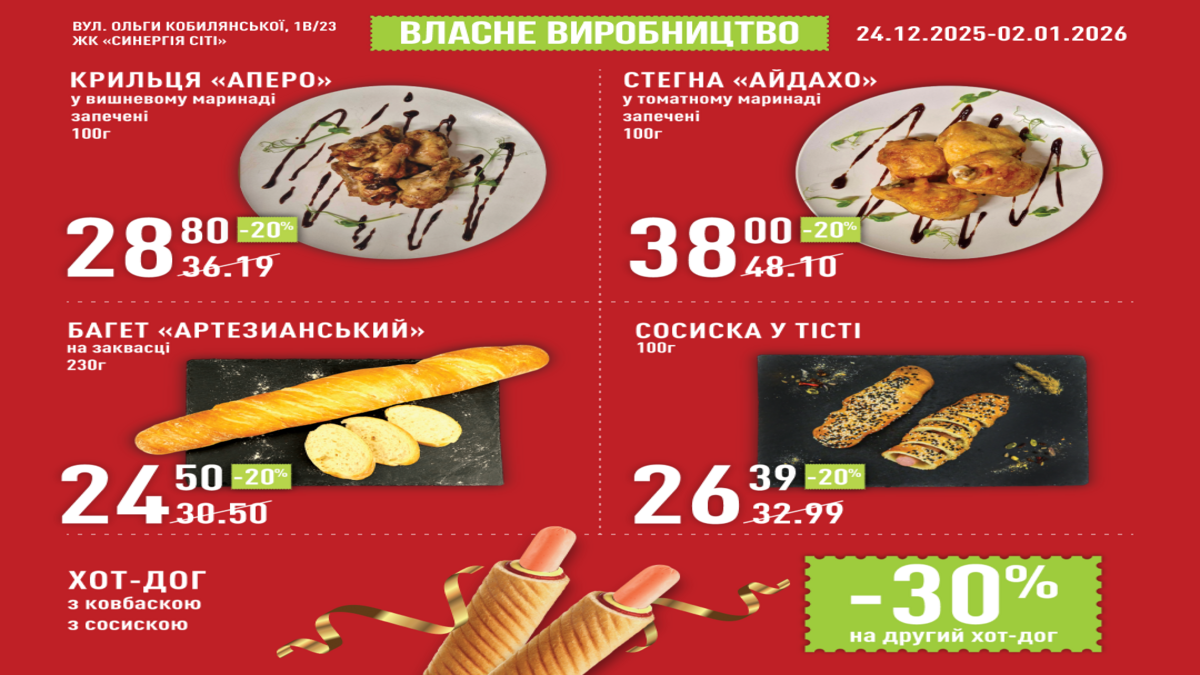 У період з 24 грудня по 2 січня у новому супермаркеті діятимуть додаткові акції та бонуси, щоб святкові покупки стали ще вигіднішими!